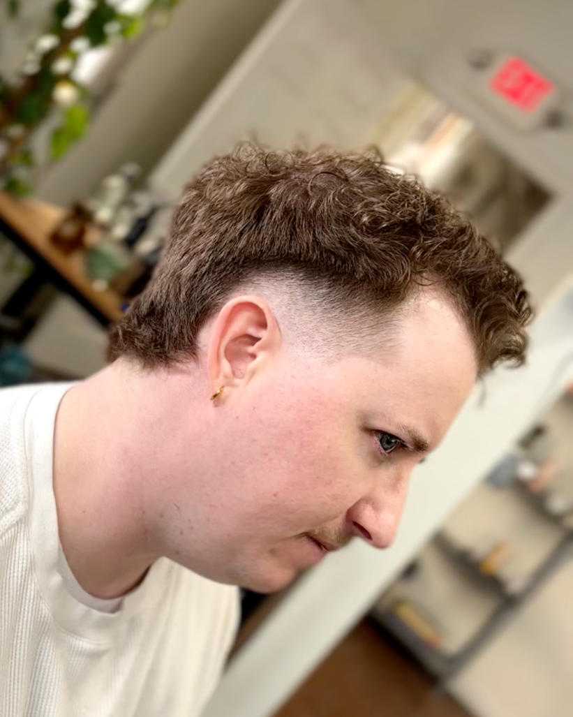 M offers an alternative to the traditional barbershop experience. Through in-depth consultations, they consider each client's specific circumstances and goals while prioritizing suitability. M’s work combines technical excellence with a modern, tailored aesthetic.                                                     Since beginning their career in 2019, M has trained with world-renowned educators and industry leaders, developing a sharp eye for detail and employing advanced cutting techniques. Continuing education remains central to M’s craft both as a teacher and as a constant student. M has built a reputation for precision and suitability to deliver haircuts that empower clients to feel confident and self actualized. They have appeared in numerous media outlets including NPR, Good Morning America, wbur boston, Autostraddle, and the providence journal